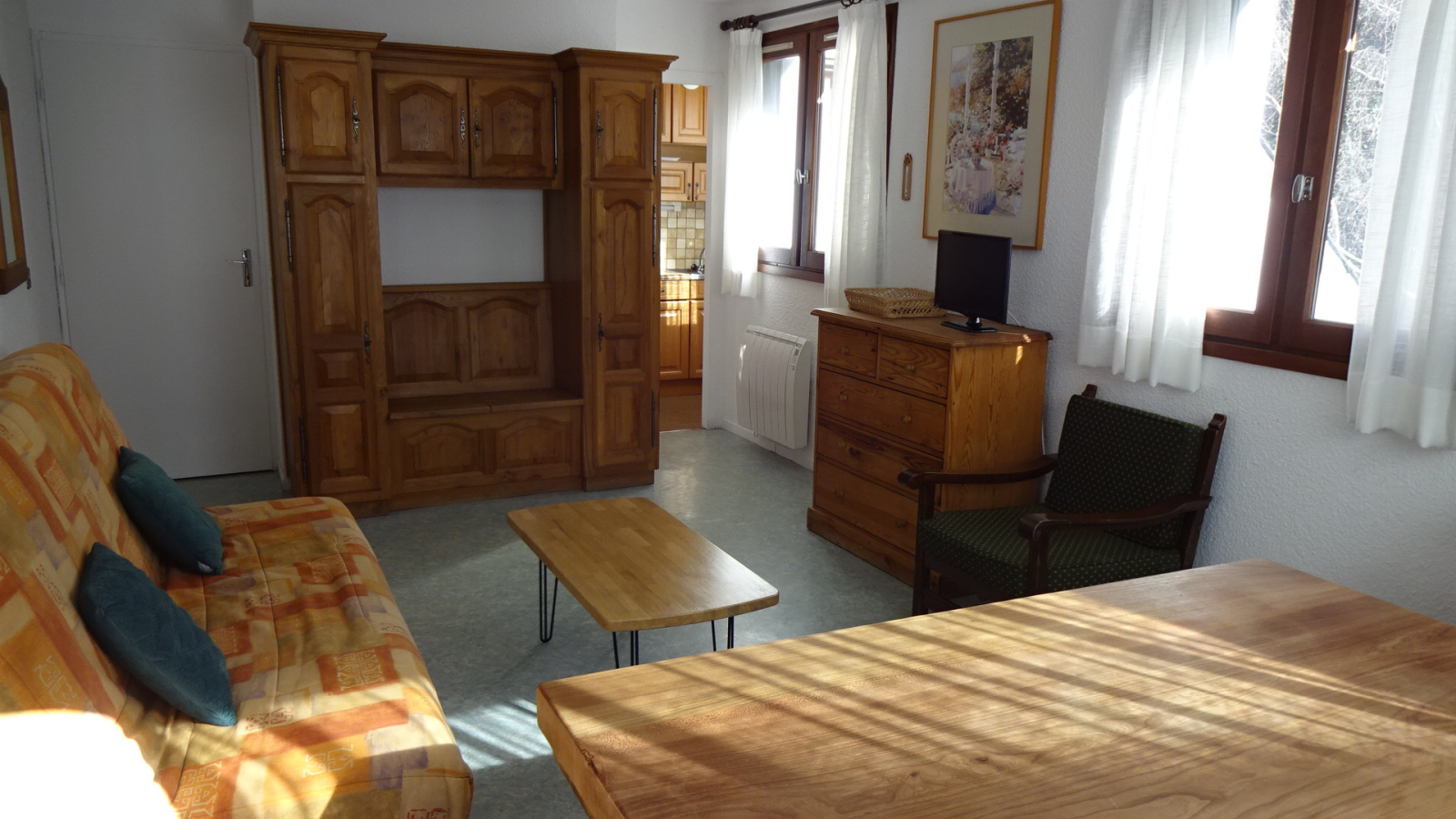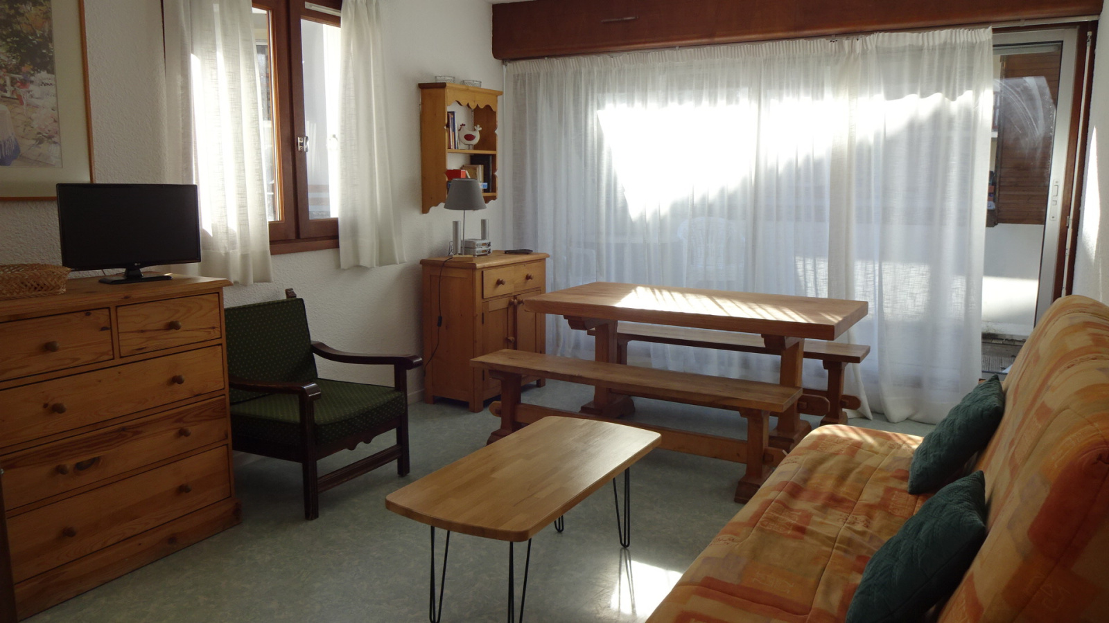 Claire Montagne Immobilier vous invite à venir visiter sa dernière exclusivité: un bel appartement spacieux d'environ 50 m2 au sol, au deuxième étage avec ascenseur d'une copropriété située dans un secteur agréable et recherché, à cinq minutes à pied à peine du coeur du village. Il vous propose une entrée, un vaste séjour très lumineux donnant sur une terrasse par une baie vitrée, une kitchenette séparée, une très belle chambre mansardée, un espace coin nuit équipée de deux lits superposés, une salle de bains avec wc. Ce lot est complété par un garage ( très pratique pour stocker des vélos) ainsi qu'un casier à skis. Logement très lumineux, équipé de nombreuses ouvertures, facile à vivre pour six personnes avec espace et grands rangements !