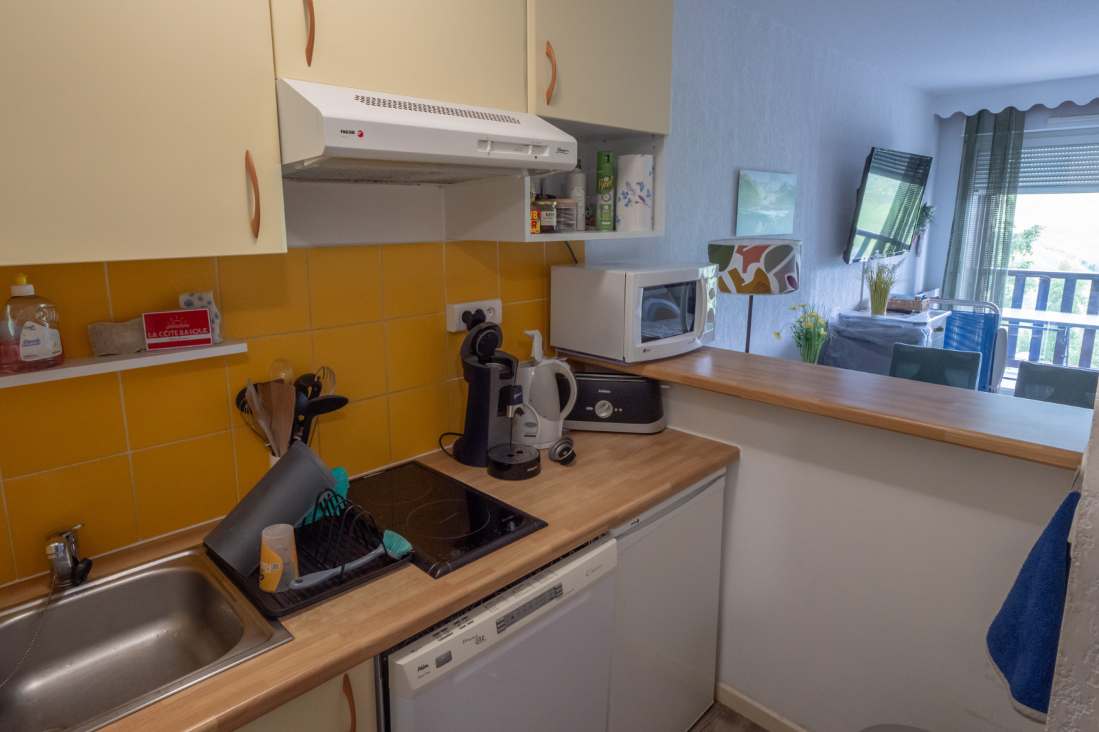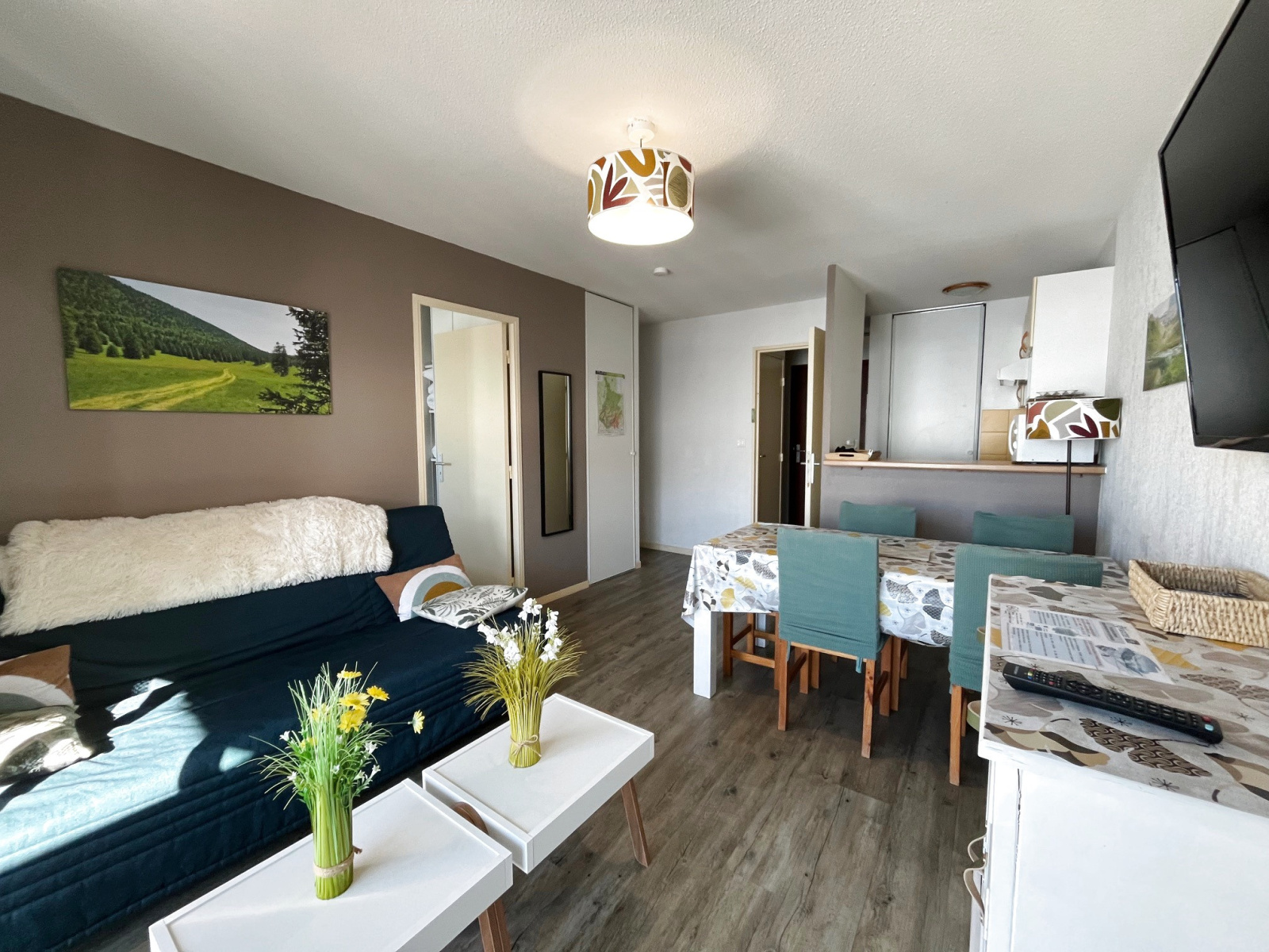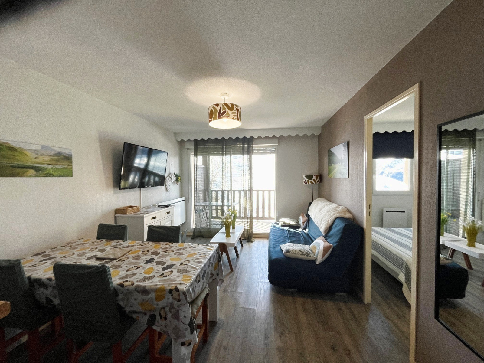 Dans une résidence de 2003 de 150 lots très bien entretenue, située dans le hammeau de Ballestas de la Station de Peyragudes, un appartement très fonctinnel, chaleureux, entièrement rafraichit et redécoré de 36 m² habitable proposant : entrée, cuisine américaine équipée ouverte sur le séjour/salon lumineux et bien agencé avec canapé convertible pour 2 couchages, balcon de 5 m² offrant une vue magnifique sur les montagnes, chambre cabine avec lits superposés, salle de bain, WC séparé, chambre avec grand placard.