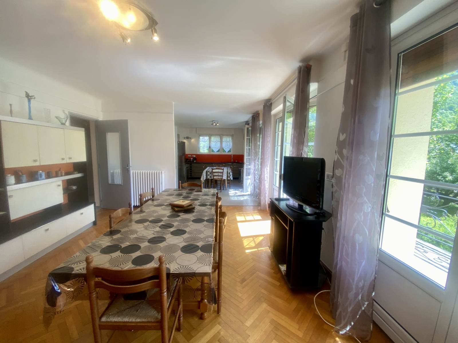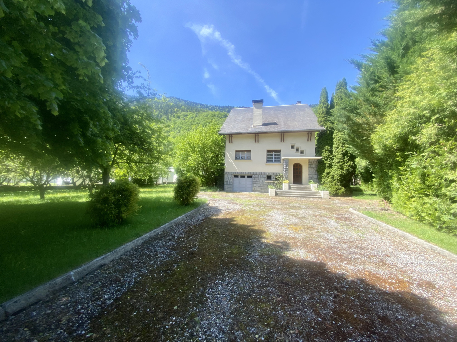 Dans un joli parc arboré et clos de 1800 m², cette grande maison au coeur du village de Bordères-Louron, à 15 mn de Loudenvielle et 5 minutes d'Arreau, propose 4 niveaux d'environ 80 m² chacun : ~160 m² habitables sur 2 niveaux avec :entrée, grand séjour-salon/cuisine amménagée ouverte ~40m² donnant sur terrasse plein sud vue montagnes ~20m², salle de bain et douche, grande chambre ~15m², WC.