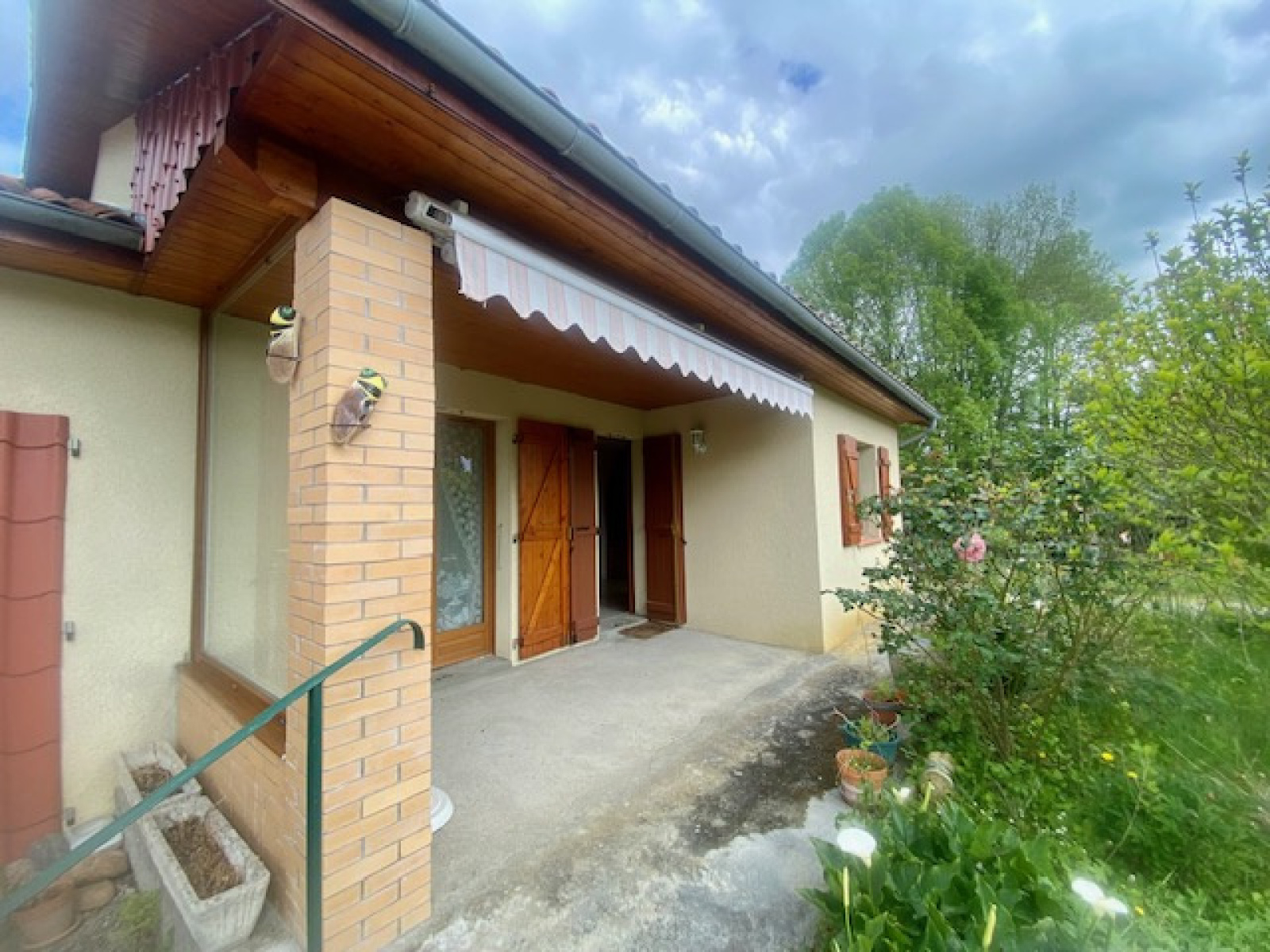 Située dans un quartier résidentiel tout proche du centre village et ses commodités, maison de plein pied de 2003 sur terrain de 1000 m² cloturé proposant : cuisine équipée ouverte sur séjour 21,5m² orienté plein sud avec accès terrasse couverte 9 m² et garage 17 m², dégagement, 2 chambres, salle d'eau et wc. Au jardin, un hauvent de 20 m² complète ce bien raccordé au tout à l'égout, équipé du double vitrage, du chauffage électrique et bois.
