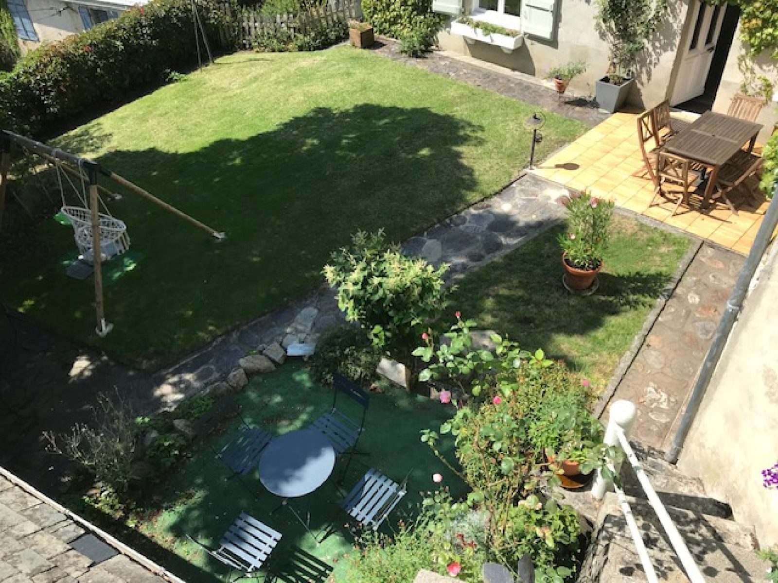 - Au jardin, clos et sur 2 paliers, ~600m² au calme, une terrasse/ coin repas, une vue montagnes et fond de vallée...
