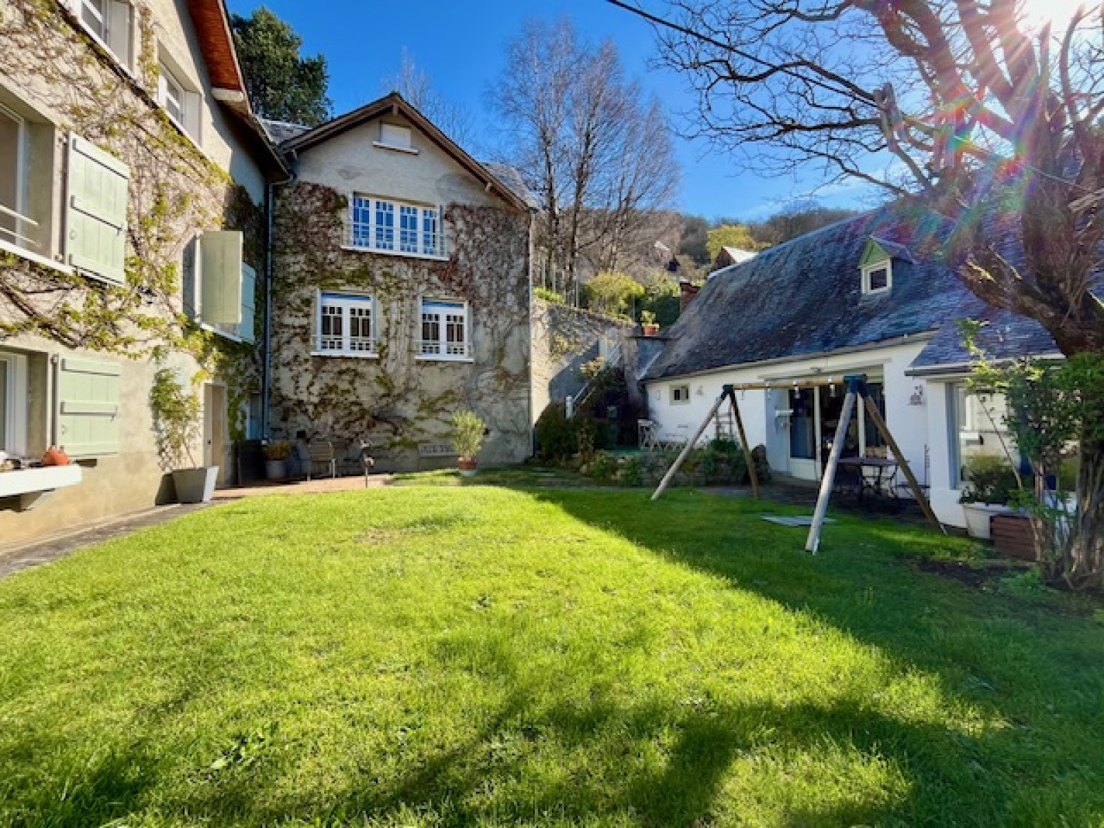 Située entre Loudenvielle à 15 minutes et Arreau à 5, dans un petit village historique ensoleillé, surplombant la vallée du Louron, vue montagnes, une maison d'architecture Pyrénéenne ~XVIIIème, type maison de maître en L, exposition sud et ouest , ~220 m² habitable entièrement rénovés sur 3 niveaux, proposant 14 couchages :