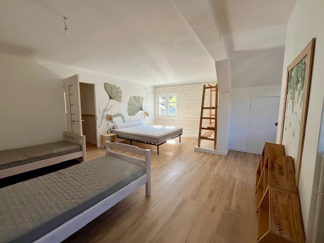 - Au dernier étage, accessible par la maison principale ou par une entrée indépendante, ~90 m² proposant une chambre, un dortoir, un salon gorgé de lumière et sa terrasse indépendante, une cuisine amménagée, une grande salle de bain, un WC/ buanderie.